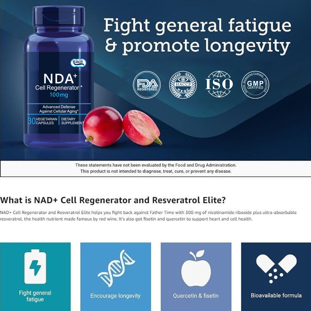 NIAGEN Nicotinamide Riboside – NIAGEN nicotinamide riboside increases cellular levels of NAD plus, an enzyme that’s essential for creating youthful amounts of cellular energy. This longevity nutrient helps fight general fatigue and encouraged youthful cognitive function in preclinical studies, making it the perfect pairing with our Resveratrol Elite trans-resveratrol.