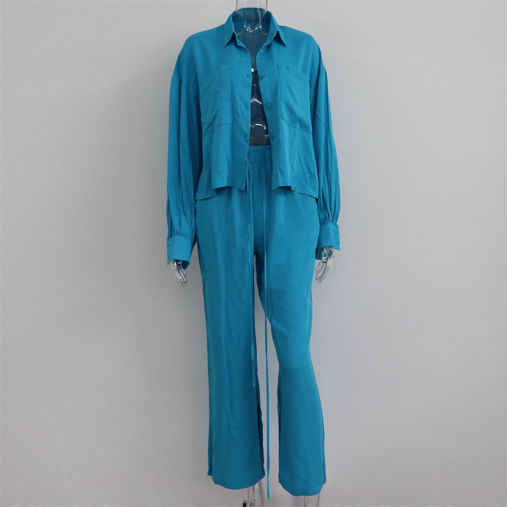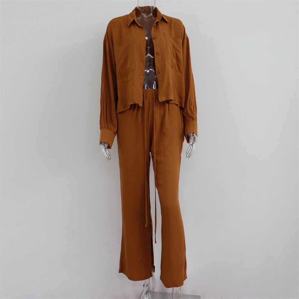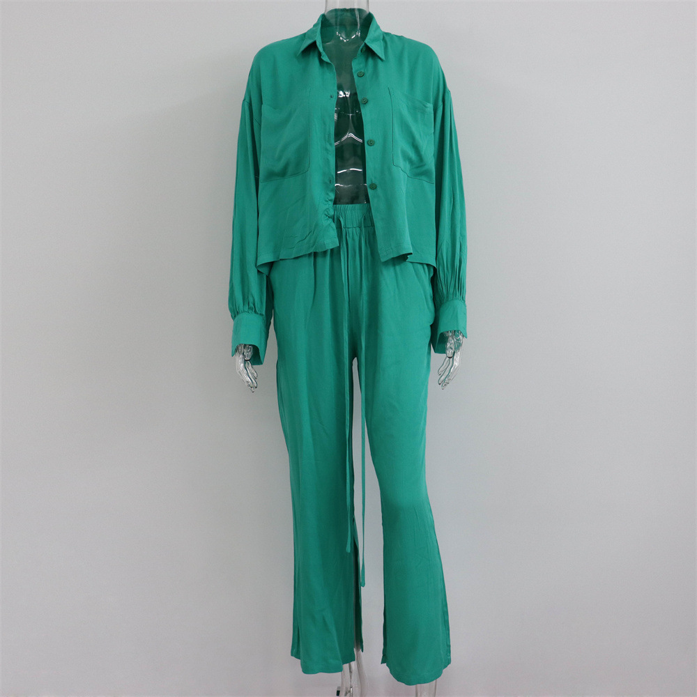 Shirts Tops Slit Wide-leg Pants Two-piece Casual