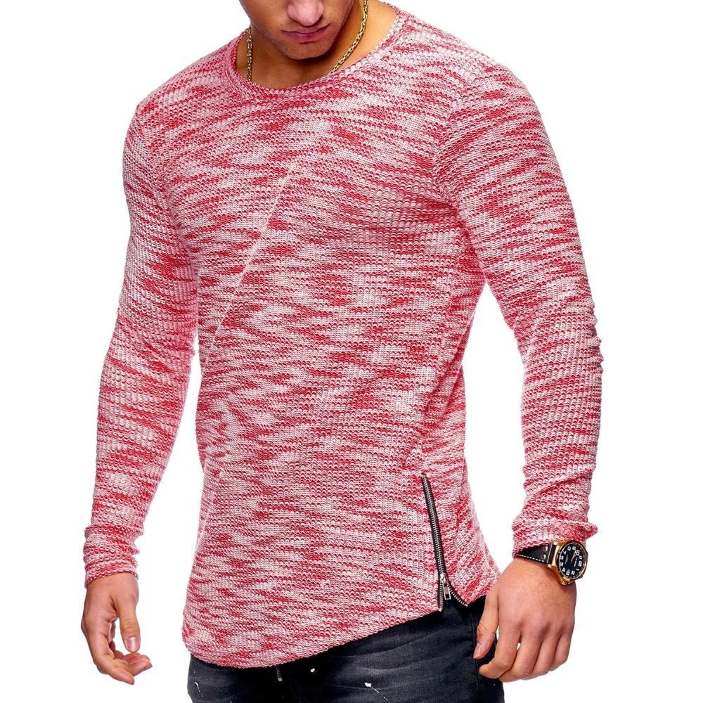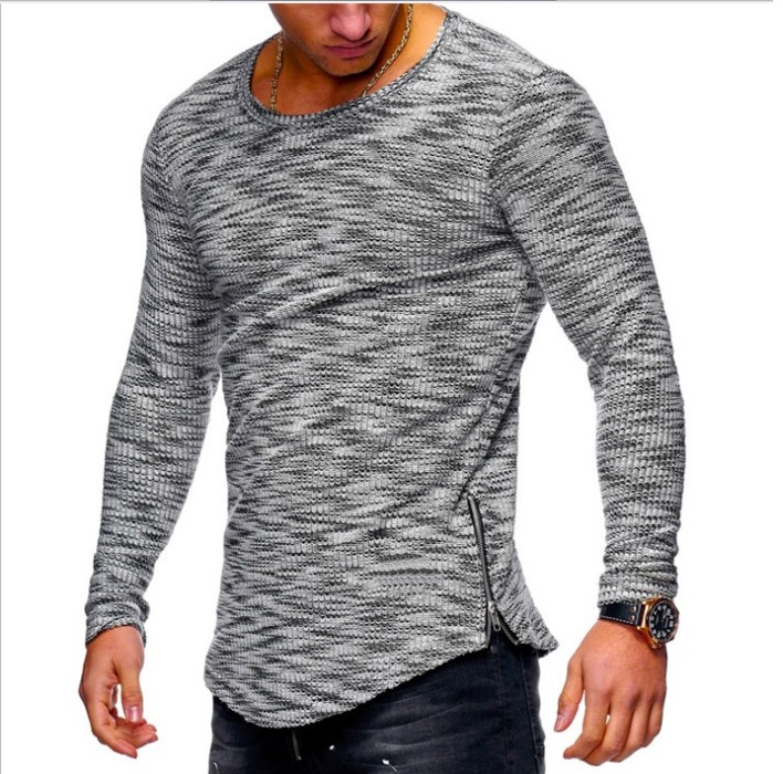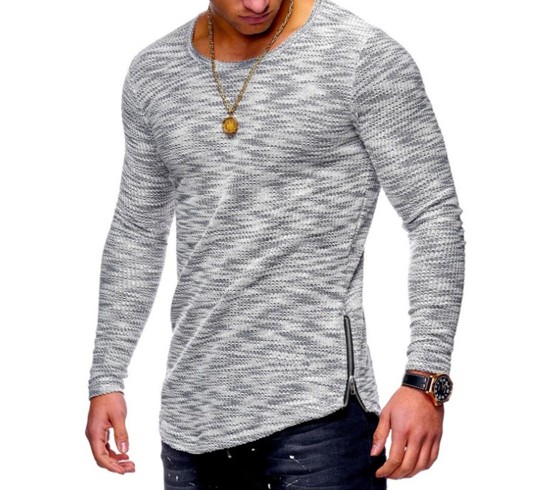 Spring pattern pit strip round neck pattern zip hem T-shirt