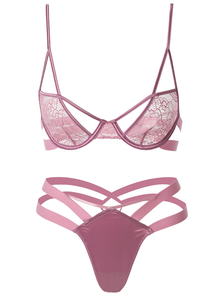 Underwear With Steel Ring Women Thin Transparent Lace Hollow Bra Set Thong